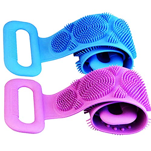 Jwxstore - Silicone Back Scrubber, Body Brush for Shower, Cleansing, Exfoliating, Massage, All Skin Types, Blue+Purple, Softening, Relaxing, Blood Circulation