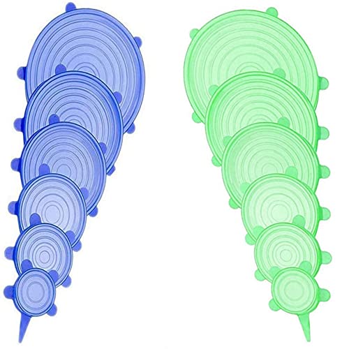 JYYHSF - 12 pcs Silicone Stretch lids set, 6 Sizes, Reusable Food Storage Covers ,Silicone Bowl Covers,Flexible to Fit All Shape of Containers, Food Cover to Keep Food Fresh (blue,green)