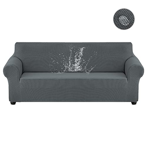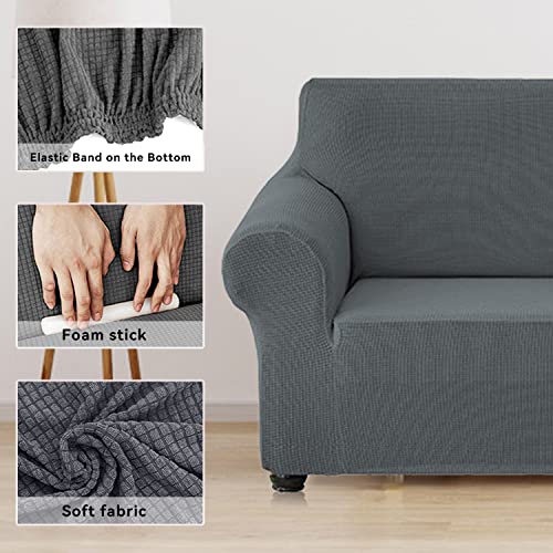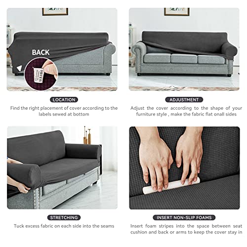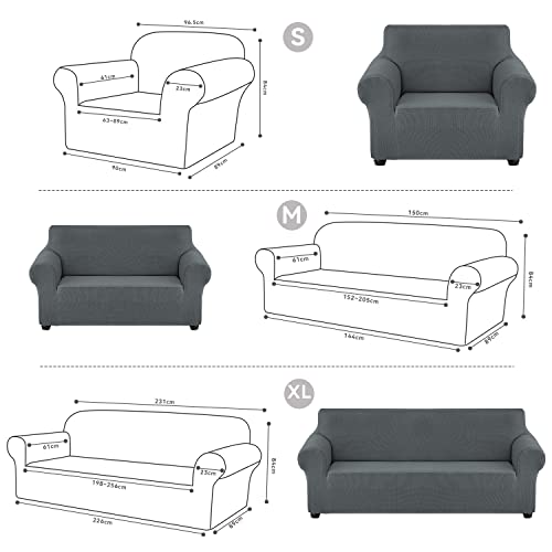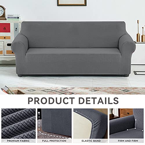 JZS - غطاء أريكة لشخصين قابل للتمدد من قطعة واحدة، واقي للأثاث لاريكة 3 مقاعد مع جزء سفلي مرن جي زي اس، رمادي , XL3 Seats