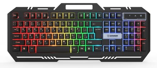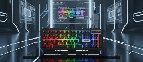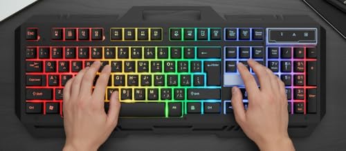 - Gaming keyboard with colorful LED lights and hanging buttons