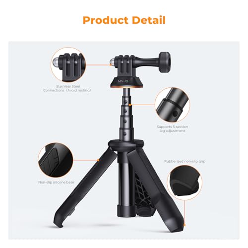 - Multi-Device Compatibility: This tripod's head supports up to 2kg of weight, making it perfect for GoPro, DJI Osmo Action, Insta 360, and other devices, ensuring you capture every moment effortlessly.