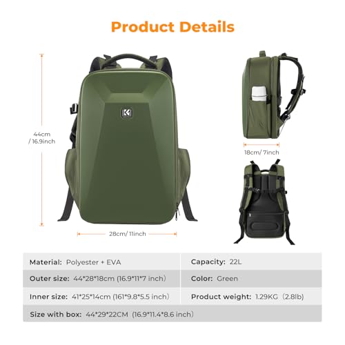 K&F CONCEPT - K&F Concept Camera Backpack, Large Waterproof Photography Camera Bag with 15-15.6 Inch Laptop Compartment Hardshell DSLR Camera Case Compatible for Canon/Nikon/Sony/DJI Mavic Drone