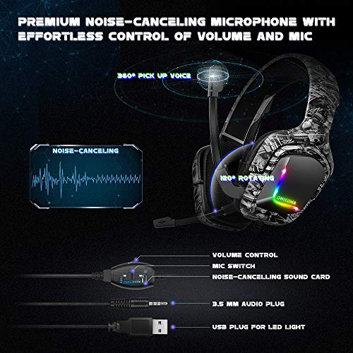 - K20 Professional Gaming Headset for PC Laptop PS4 Slim Pro Xbox One S X (Camouflage White)