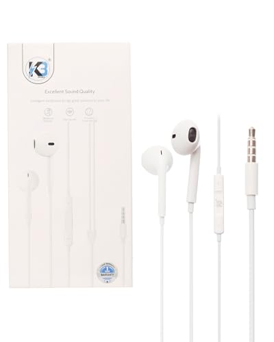 K3 - K3-HP6 In-Ear Wired Earphones with Mic Supporting Voice Calls, High Definition Sound, Noise Isolation, Tangle-Free Cable, Compatible with Most Devices 3.5mm Jack - White
