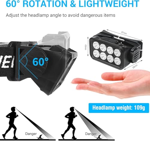 - كشاف رأس بمستشعر ذكي ➤➤ يحتوي كشاف الرأس للجبهة على 5 أوضاع إضاءة (عالية/متوسطة/منخفضة/وامضة/طوارئ)، ليناسب جميع احتياجاتك في الظروف المختلفة. مع إضافة خاصية استشعار الحركة، يمكن تشغيل/إيقاف تشغيل كشاف الرأس المقاوم للماء IPX4 من محيط 15 سم عن طريق التلويح بيدك، مما يجعله أكثر ملاءمة.