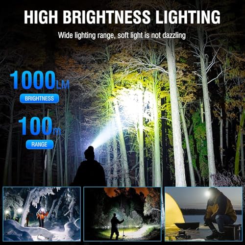 Generic - مصباح رأس K354 للبالغين قابل لإعادة الشحن، 1000 لومن، 8 مصابيح LED ساطعة مع مستشعر حركة، USB C 5 اوضاع مقاومة للماء IPX4، للجري في الهواء الطلق والمشي لمسافات طويلة والتخييم والصيد، 4 قطع