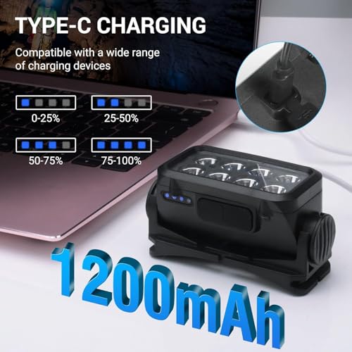 - كشاف رأس قابل لإعادة الشحن بمنفذ USB C ➤➤ الكشاف مزود ببطارية مدمجة بسعة كبيرة 1200 mah لتستمتع بعمر بطارية أطول، مع منفذ شحن سريع USB C لتحظى بوقت شحن أقل من ساعتين فقط، مع 4 مؤشرات طاقة ليد زرقاء (100% - 75% - 50% - 25%)، لتتمكن من معرفة متى يحين وقت الشحن. هدية رائعة للأب.