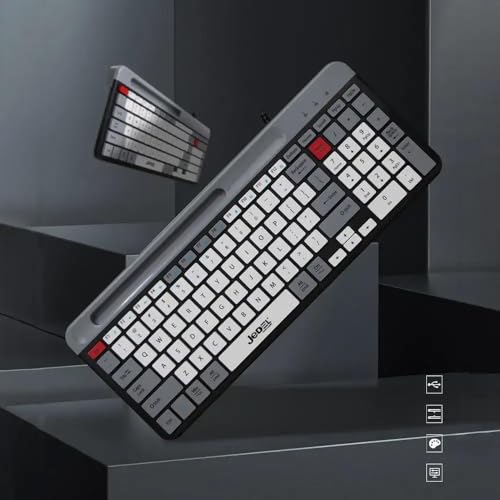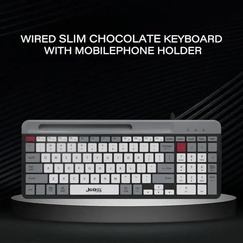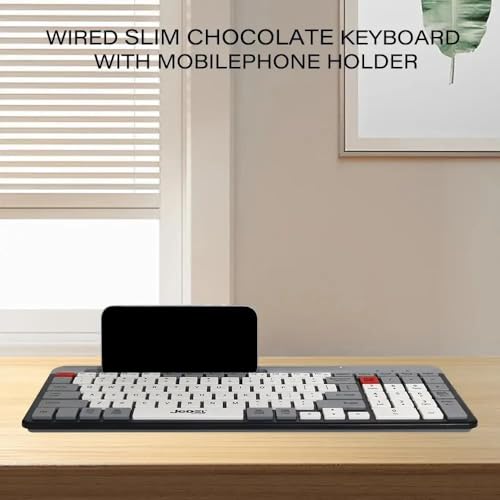 Generic - K37 Slim Wired Keyboard – Stylish, bilingual (English/Arabic), and comes with a built-in phone holder. Perfect for your desk!