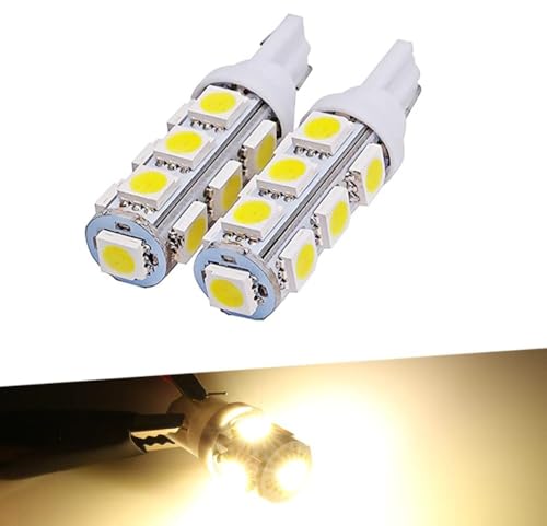Generic - مصابيح LED T10 W5W، مصباح اسفين مصابيح اضاءة للسيارة الداخلية والقبة والتابلوة والخريطة وRV ولوحة الترخيص ومصابيح جانبية - تيار مستمر 12 فولت - أبيض 13 ليد - 2 قطعة - من كابر مصر 2020