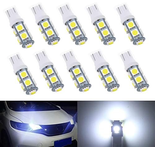 Generic - Kaber Egypt 2020 T10 W5W LED Wedge Light Bulbs for Car Interior Dome Map RV License Plate Side Marker Lights - DC 12V - White 9 LED - 10 Pieces
