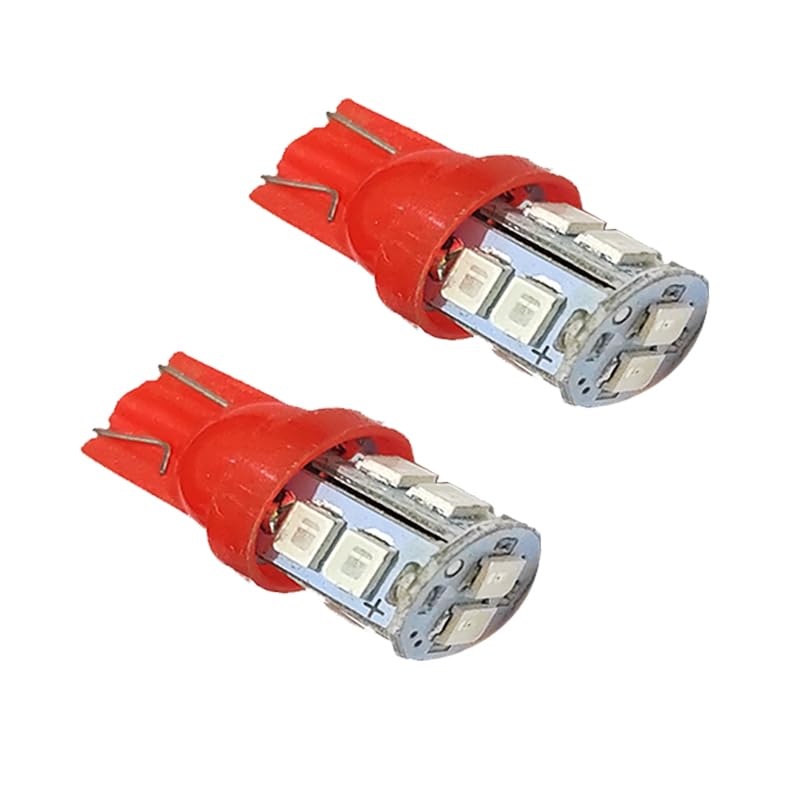 Generic - KaberMisr 2020 2020 LED SMD T10 Wedge Base Bulbs for Parking Light/Side Indicator/License Plate Lights (Red Light, 10 LED, 2 Pieces)