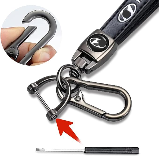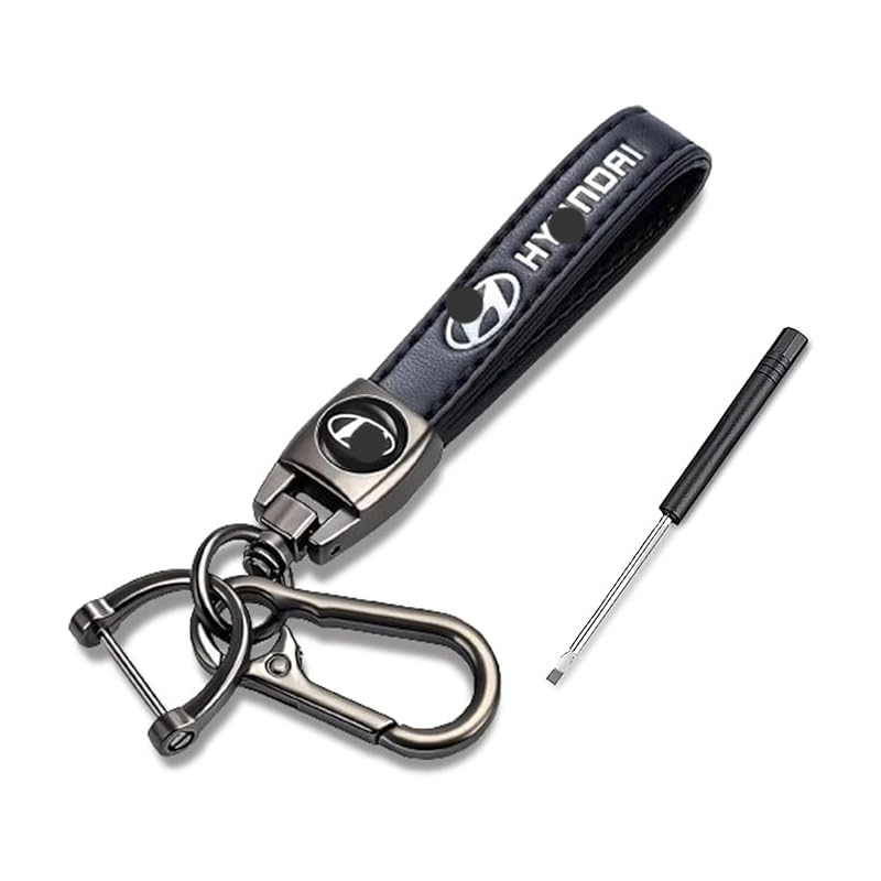 Generic - ميدالية وسلسلة مفاتيح سيارة ، مناسبة للسيارة والدراجات النارية والعائلة (جلد ومعدن ، لون اسود ، متوافقة مع هيون؟؟ ، كود : 6664) - من كابرمصر 2020