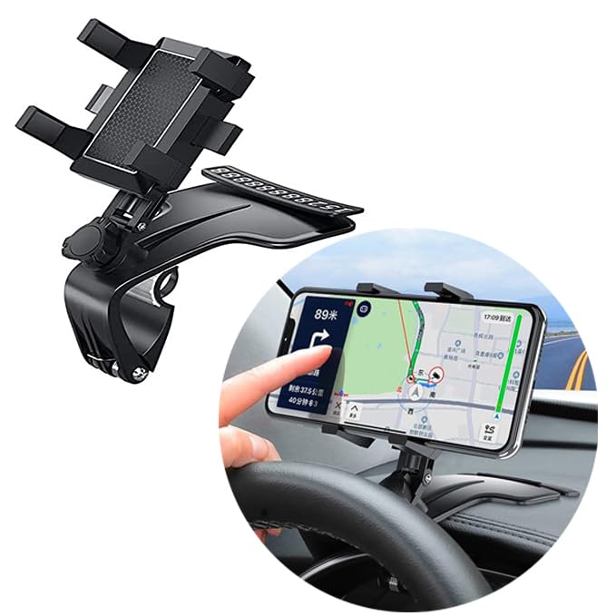 - Easy to install and disassemble:Added portable pull loop for mobile holder, the swivel clip (clasp) is effortless to use effortlessly. The stand features a sturdy clip that can be securely attached to the instrument dashboard / on any flat surface. Simply slide it to move it to the perfect position, features one hand control, it is easy to pull and back your mobile device with one hand.