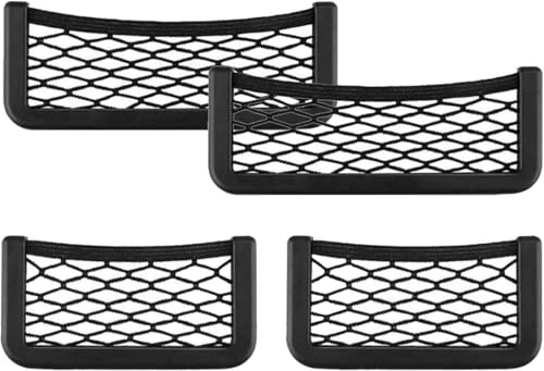 Generic - جيب تخزين شبكي خلفي وجانبي لمقعد السيارة مصنوع من النايلون منظم وحامل للموبايل لون اسود - 4 قطع (2كبير/2صغير) من كابرمصر 2020