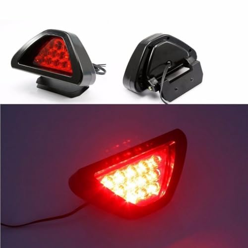 - 12 مصباح LED - يوفر مصباح الفرامل المثلث الوامضة إضاءة فائقة السطوع لأنه يحتوي على 12 لمبة LED عالية الطاقة تجعل سيارتك تبدو وكأنها سيارة مباشرة من سباق يضمن التصميم المثلث انتشار الضوء إلى أقصى حد أثناء القيادة أثناء الليل.