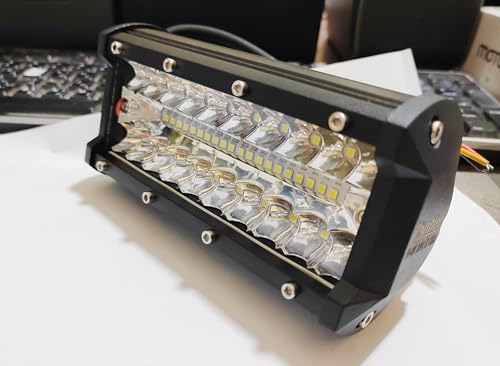 - كشاف فانوس شبورة ليد معدن 40 ليد جهازعرض ضوئي إضافي، اضاءة ابيض 3 طرف اضاءة ثابت ورعاش ، مناسب للسيارات والدراجات والمتوسيكلات والشاحنات للطرق الوعرة