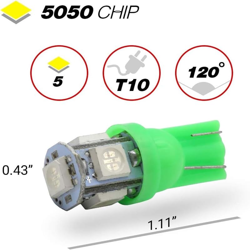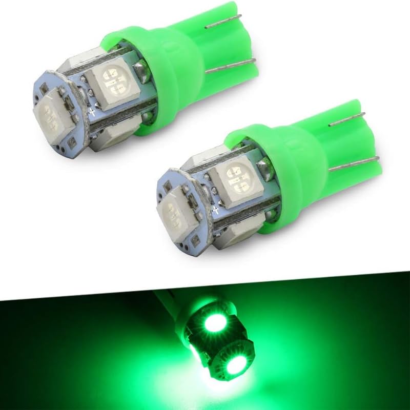 Generic - KaberMisr 2020 LED SMD T10 Wedge Base Bulbs for Parking Light/Side Indicator/License Plate Lights (Green, 5 LED, 2 Pieces)