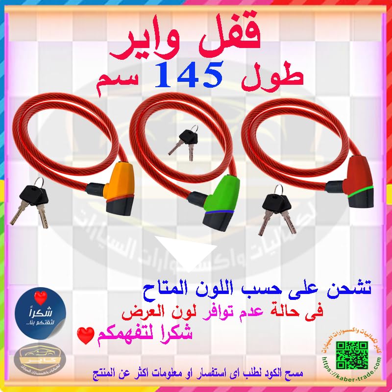 Generic - KaberMisr 2020 Motorcycle Scooter Air Security Lock Heavy Duty Anti-Theft (Wire Lock Red Green Length 145 cm)
