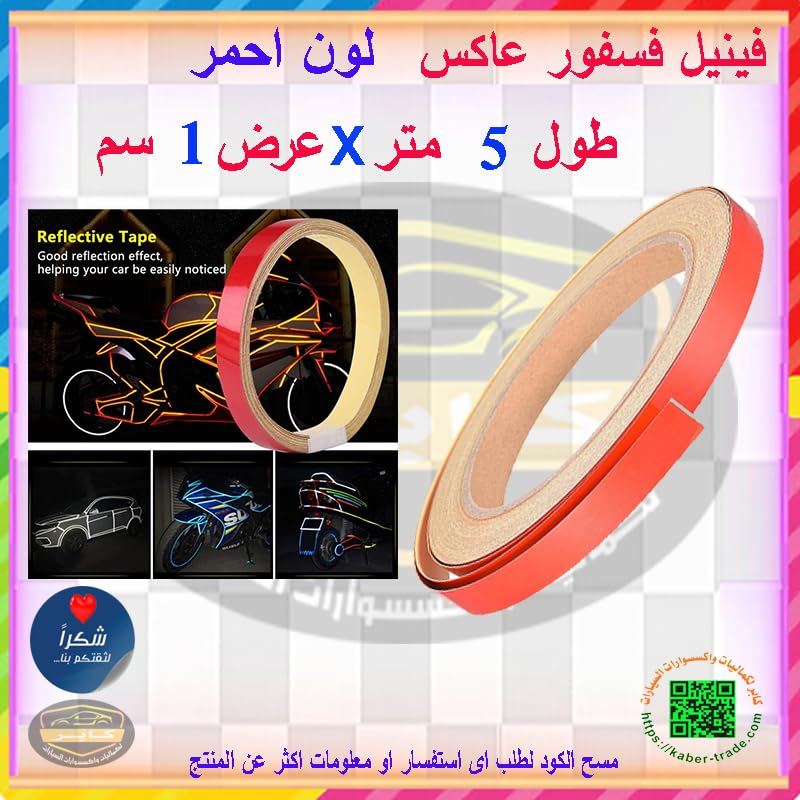 Generic - شريط تحذير للسلامة عاكس للضوء علامات ذاتي اللصق ملصق عالي الكثافة للسيارة والشاحنة (لون احمر ، طول 5 متر، عرض 1 سم) - من كابرمصر 2020