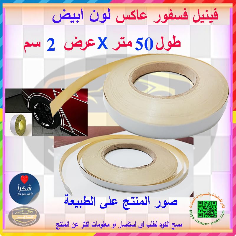 Generic - KaberMisr 2020 Reflective Safety Warning Tape Self Adhesive High Density Sticker for Car Truck (White, 50 Meter Length, 2 cm Wide)