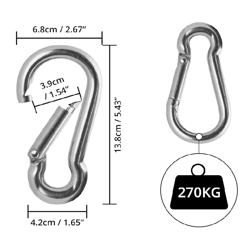 - Spring operates smoothly, easy to open and close, keeps your valuable items safe and quick connect with ropes, chains and straps.