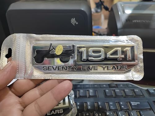 - 3D Car Logo Sticker Decal Sticker SEVENTY FIVE YEARS 1941 Jeep Car Decor Decal Sticker - Loaded Metal Large - Silver Color Black