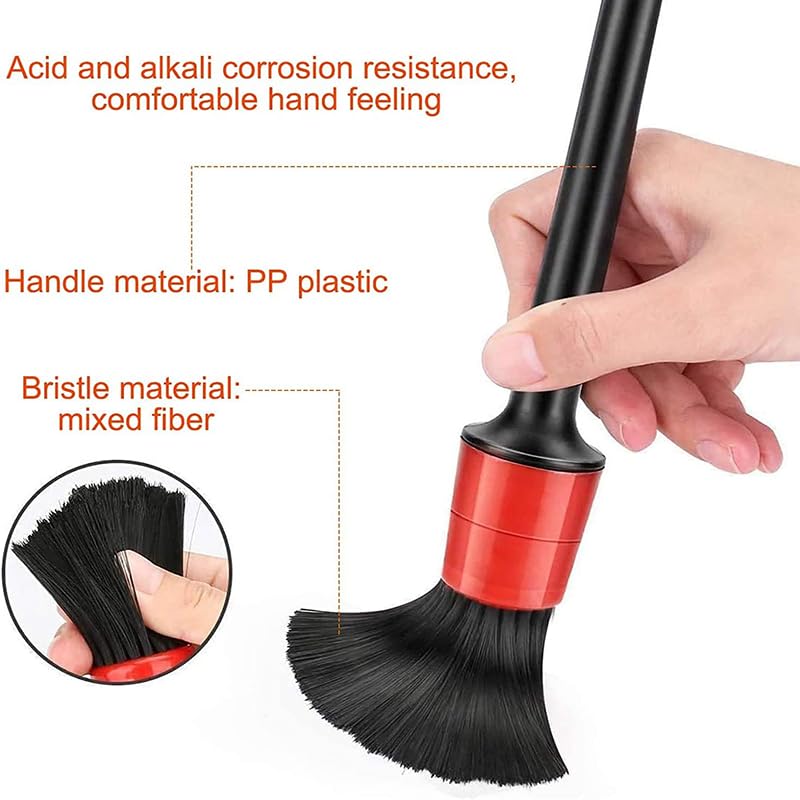 - ✅【High Density Bristles】- The car interior detail brush set uses solvent-resistant bristles. Even after frequent use, the bristles of the detail brush are durable, do not fall off or smell. The car cleaning brush head is thick and it can hold plenty of water and soap which helps to increase the cleaning process. The car cleaning brush is great for dry and wet use and does not leave bristles after use.