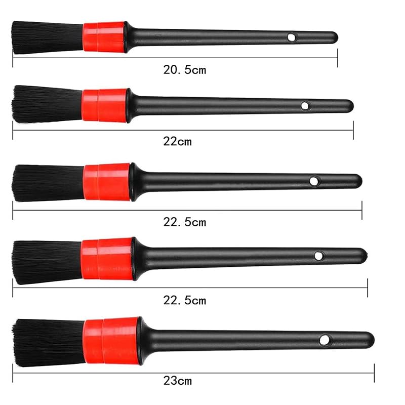 - ✅【VERSATILE SIZES】- 5 different size car cleaning brushes meet any cleaning needs. The small detail brush can fit into all small notches, corners, wheel nuts or narrow space. The large cleaning brush is suitable for cleaning the outside and larger areas more efficiently. Such as wheels, air vents, car seats, engine compartment, dashboard, logos and so on.