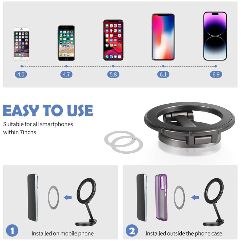 - ✅Enjoy the convenience of hands-free phone while driving with this magnetic foldable phone stand. This upgraded version features a retractable and folding arm that is more flexible and adaptable to your desired viewing angle. Its sleek and compact design won't take up valuable space or impede viewing.
