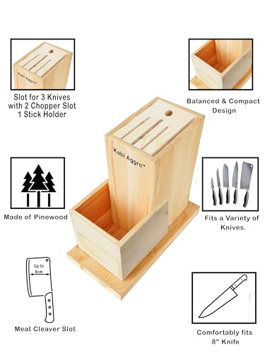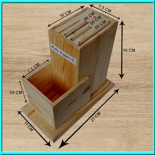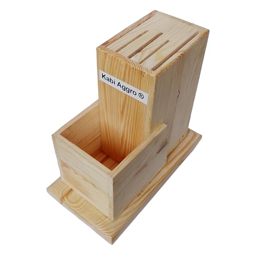 Kabi Aggro - حامل سكاكين مصنوع من الخشب، حامل فارغ لأدوات المائدة من كابي اجرو، طقم أدوات المطبخ (خشبي، سكين، فرشاة، قطاعة)
