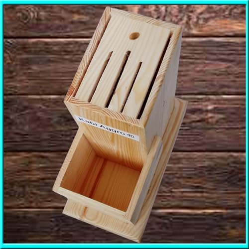 - مزايا رائعة - حامل سكاكين المطبخ المصنوع من خشب الصنوبر يعد حلًا عصريًا ومتطورًا لتخزين السكاكين. يحتوي حامل السكاكين هذا على مجموعة متنوعة من الفتحات مما يسمح لك بتخزين جميع سكاكين اللحم المفضلة لديك وسكاكين الشيف والسواطير وسكاكين الخبز. يتضمن فتحة لقضيب الشحذ ومقصات المطبخ أيضًا.