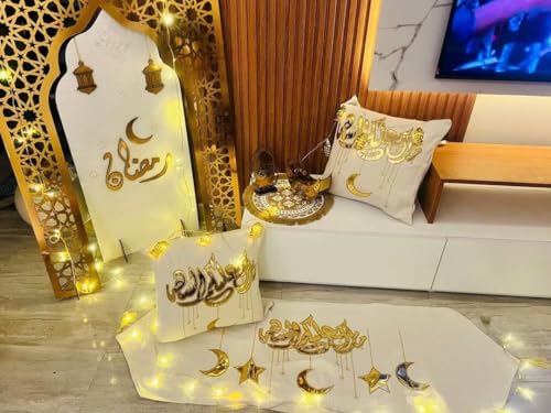 oops - Kafr Cushion Set Ramadan Decor Luxury Gold Accents - 2 Kafr Cushion + Islamic Table Runner