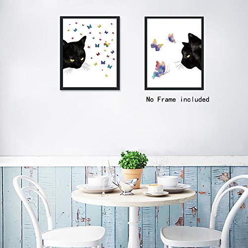 - ✷PERFECT FOR WALL DECORATION:Use these vivid animals art prints to bring a lively feel to your space. Cute black cats and colorful butterflies on the canvas will energize your day.This set of prints is brightly colored and is the perfect artwork of the living room,bedroom,bathroom,dinning room,etc.