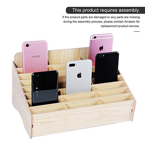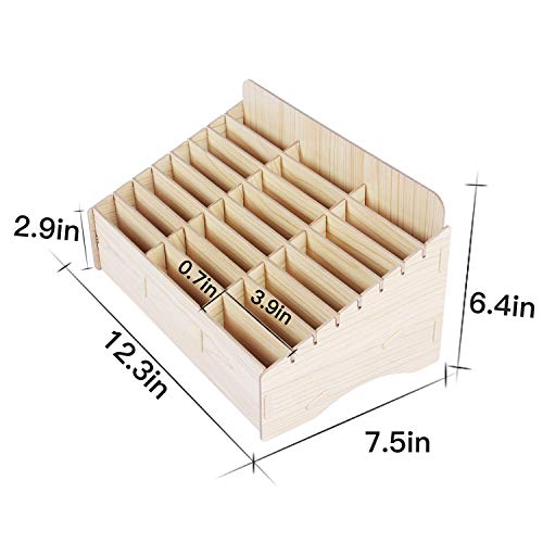 Kaisi - صندوق تخزين من كايسي، بتصميم كلاسيكي، بلون خشبي، مصنوع من الخشب المتين، منظم للهواتف المحمولة والمكتب مع 24 شبكة