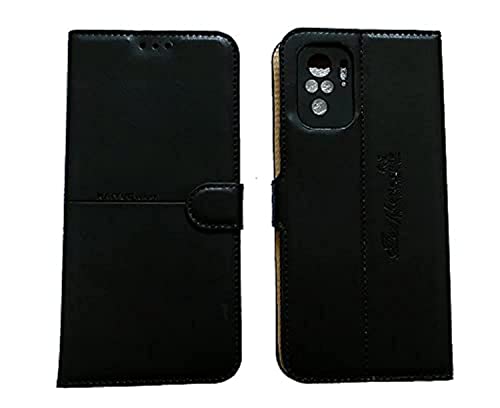 Kaiyue - جراب حماية جلد قابل للطي لموبايل شاومي ريدمي نوت 10 من كايوي - اسود