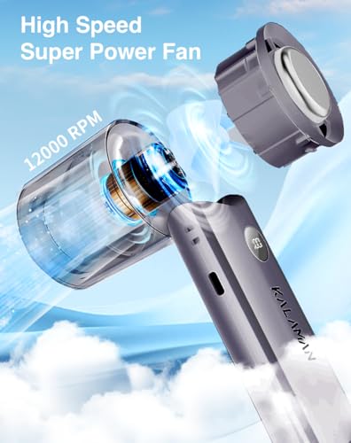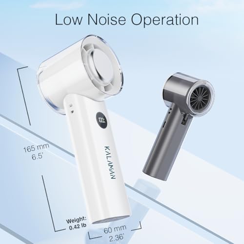 - KALAMAN Ultra-Fast Cooling: Features an advanced 5-blade design paired with a high-speed three-phase brushless motor, delivering a maximum wind speed of 6.5m/s – faster than traditional hand held fans! With a 12000 rpm maximum speed, it instantly blows away the heat, keeping you cool and comfortable all day long