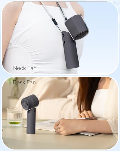 - KALAMAN 4-in-1 Portable Fan: Discover the ultimate convenience with our innovative handheld personal fan, designed to offer dual functionality. Seamlessly switch between a portable handheld fan and a practical desk fan to suit your needs. This mini fan comes equipped with a lanyard, allowing you to hang it on the neck for hands-free personal cooling. Super compact, lightweight, and easy to carry, it’s the perfect companion for work, walks, travel, makeup sessions, or shopping