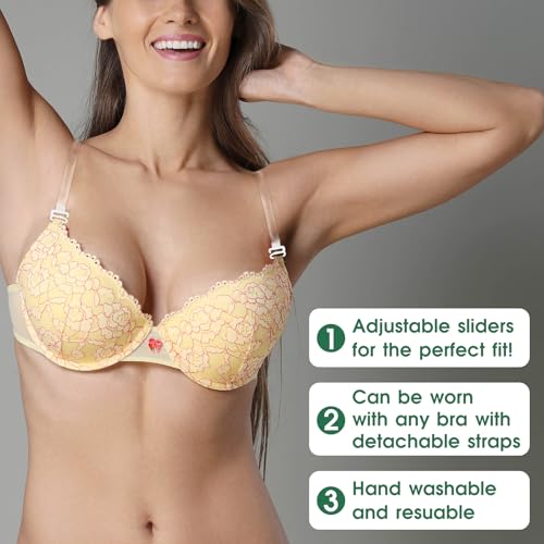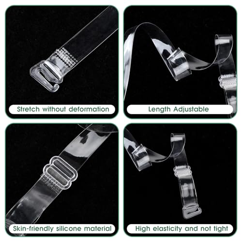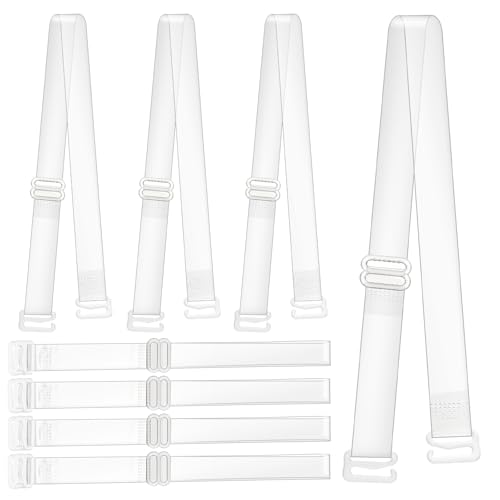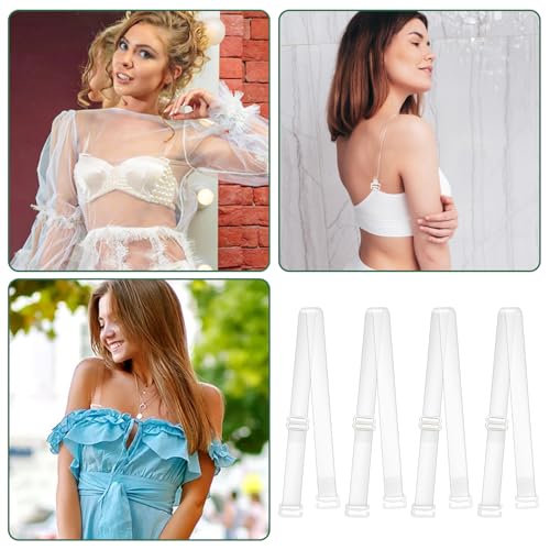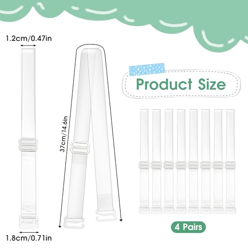 KALIONE - احزمة حمالة صدر شفافة، 4 ازواج من احزمة حمالة الصدر غير المرئية، اشرطة حمالة صدر شفافة غير قابلة للانزلاق 12 ملم، اشرطة رفيعة من البولي يوريثين الحراري للرقص، احزمة شفافة قابلة للتعديل، احزمة كتف