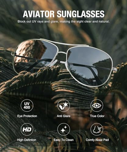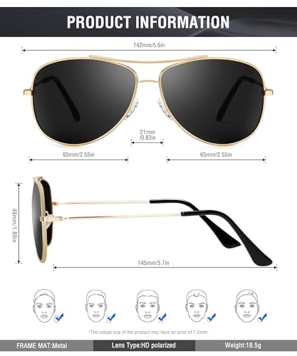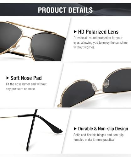KALIYADI - نظارة شمسية افياتور بعدسات مستقطبة للرجال والنساء من كاليادي: نظارة شمسية بوليت مطورة مع حماية من الأشعة فوق البنفسجية، للقيادة