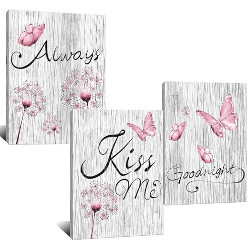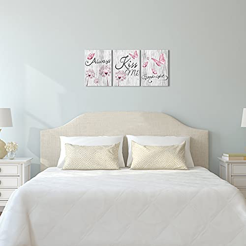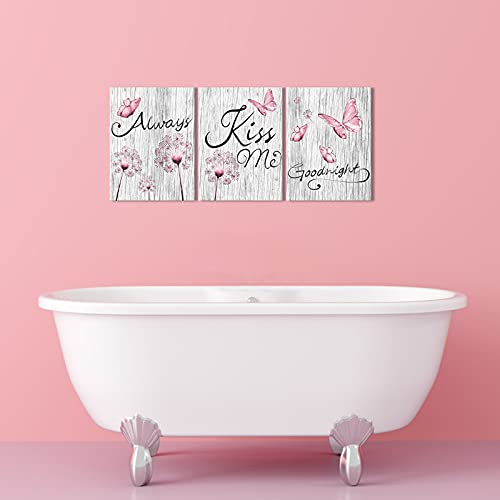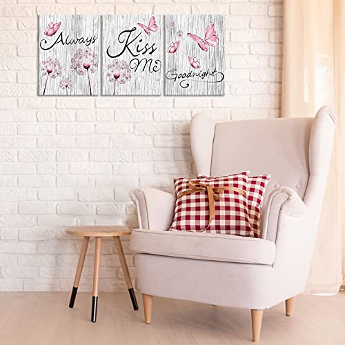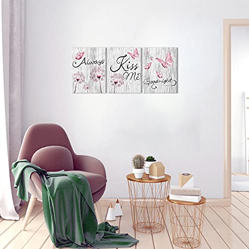 Kalormore - Kalormore Picture for Bedroom Pink and Grey Dandelion and Butterflies Giclee Prints Romance Rustic Always Kiss Me Goodnight Inspire Canvas Wall Art Ready to Hang