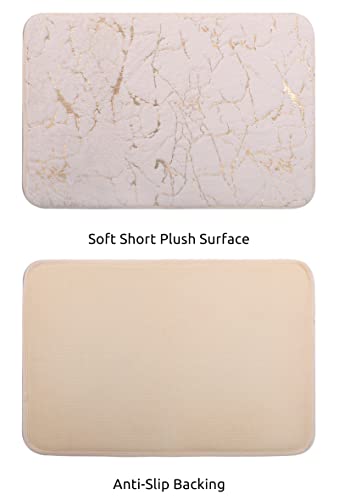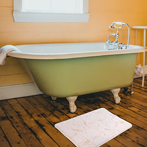 KAMA BRIDAL - سجادة حمام من الميموري فوم ناعمة بظهر مانع للانزلاق وماصة للماء سريعة الامتصاص من كاما برايدل، مقاس 41 × 61 سم، لون أبيض وذهبي