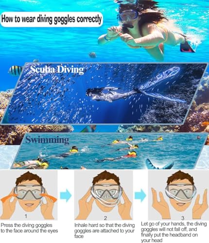 - 🤿Perfect Fit & No Leaking - Adjustable elastic silicone strap help to fit your face snugly and the improved mask will fit different face shapes well including men, women, teenagers and so on. This mask has a very soft liquid silicone skirt, reduces face water pressure, seals on your face well without worrying about water leakage