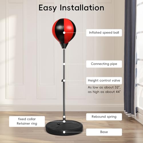 - Height Adjustable Stand: The height of the boxing set's stand is adjustable from 31 to 44 inches, making it suitable for children ages 3 - 8 years old. High-quality springs help the punching bag rebound quickly after being hit
