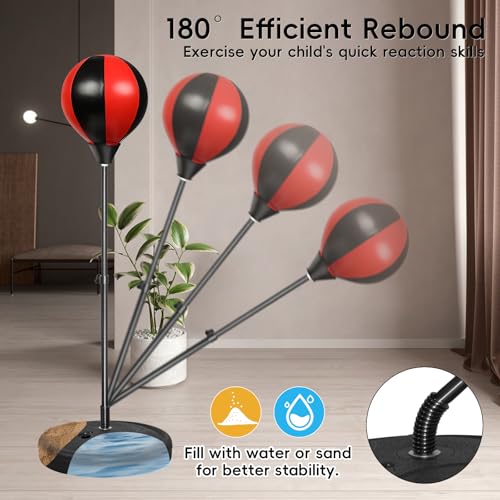 kamija - Punching Bag for Kids, Boxing Bag for Kids 3-8 Years Old, Kids Punching Bags with Height Adgustable Stand, Kids Boxing Set with Gloves, Sport Toy for Boys & Girls