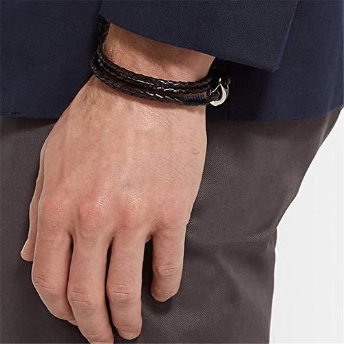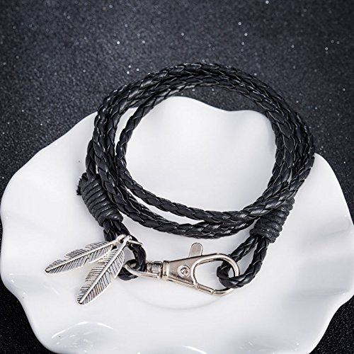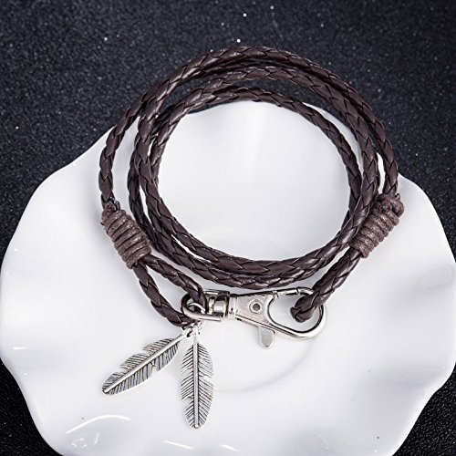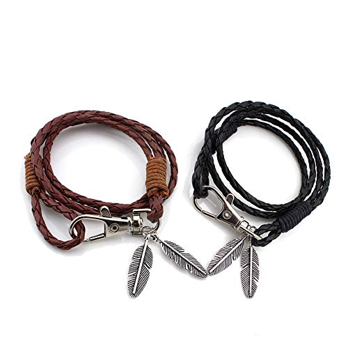 KAMRESH - Braided Leather Bracelet Set Leather Warp Bracelet Feather Accessories Handmade Mutil-Layer for Men Women (2pc), One Size, Leather