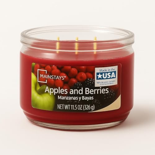 Candle-lite ( Mainstays ) - برطمان شموع برائحة التفاح والتوت يدوم حتى 45 ساعة من وقت الاشتعال من كانواتي، بسعة 326 جم، ثلاثة فتائل