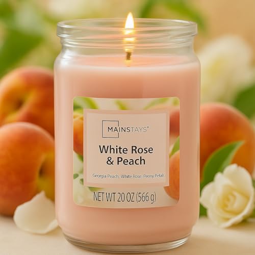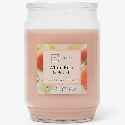 Candle-lite ( Mainstays ) - برطمان شمعة معطرة برائحة ورد وخوخ تشتعل حتى 120 ساعة من الاحتراق بفتيلة واحدة من قنواتي - 567 جم