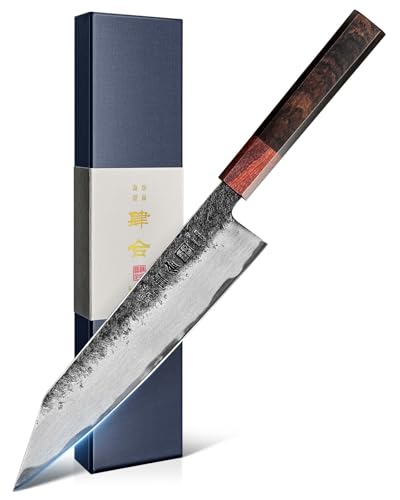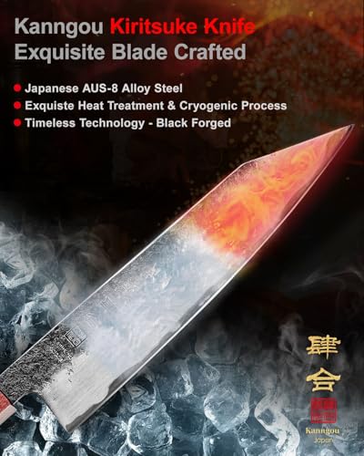 kanngou - Japanese Chef's Knife 21 cm Kiritsuke Knife, Extra Sharp Kitchen Knife Made of AUS-8 Steel with Ergonomic Ebony and Redwood Handle and Gift Box