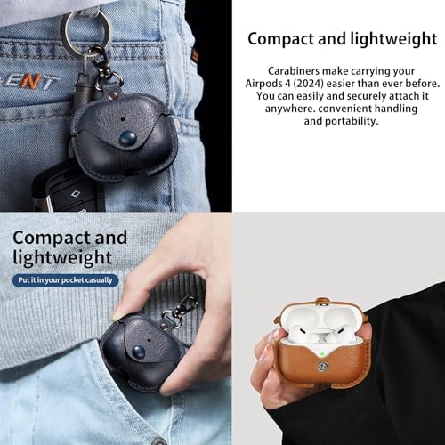 KANOYO - جراب حماية جلد من الجلد الصناعي مضادة للصدمات ومقاومة للخدش مع حلقة مفاتيح لسماعات ايربودز 4 (2024) من كانويو، ديب
