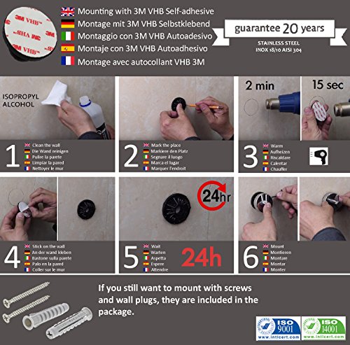 - Highest strength and durability - manufactured to standards ensure the highest strength and durability in wet environments - it is ideal for use in the bathroom, kitchen, etc. Due to the properties of the material (stainless steel 18/10 AISI 304) and its antibacterial properties, also suitable for intensive use in hotels, education and medical facilities